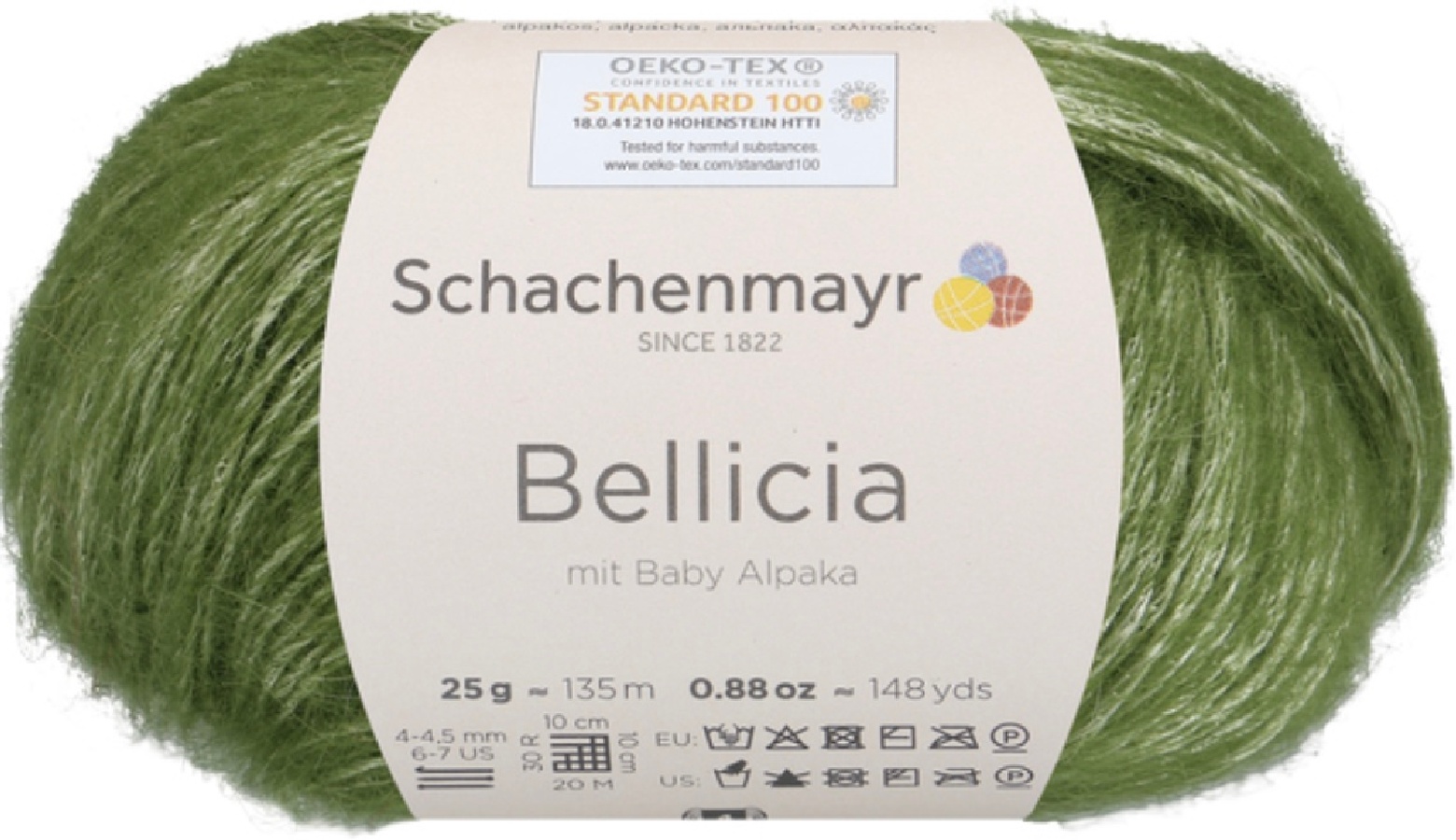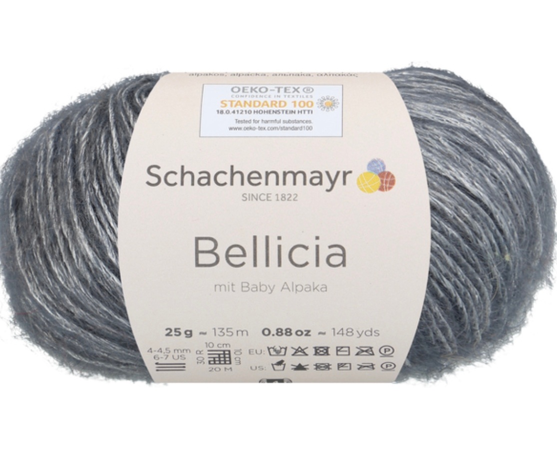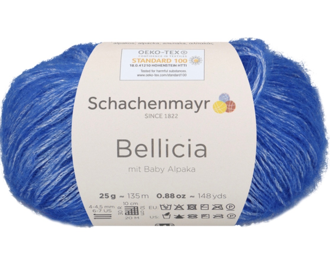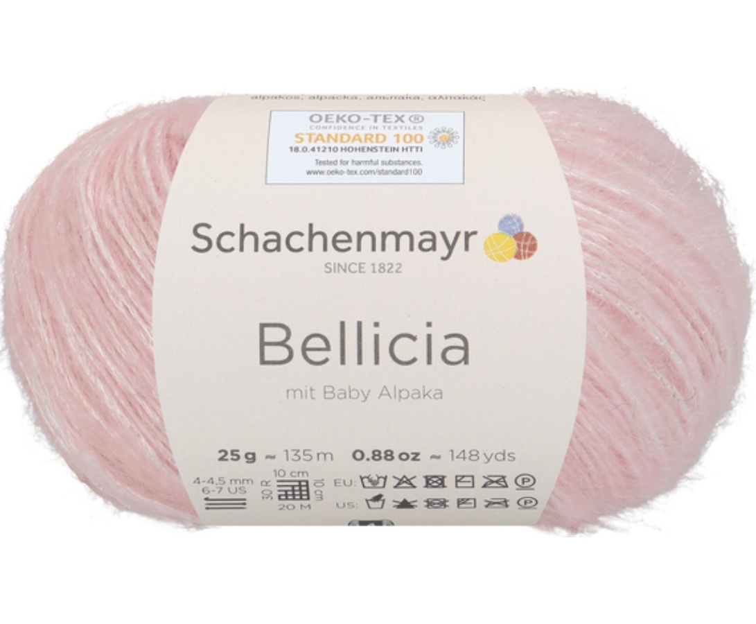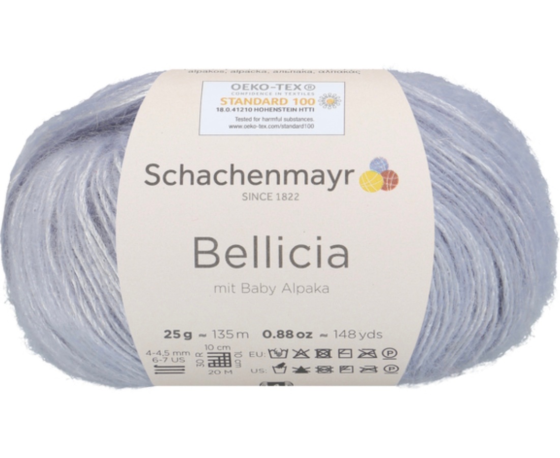 Белисия - очень мягкая, нежная, совсем не колючая пряжа. Имеет деликатный пушок и блеск. Отличный вариант для струящихся изделий - шалей, палантинов, джемперов.