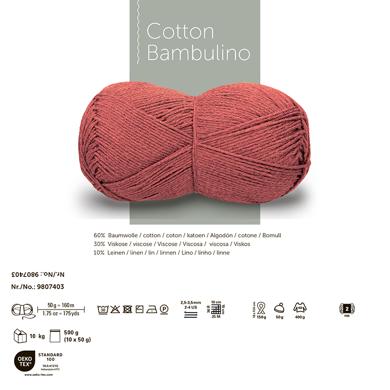 Коттон Бамбулино от Schachenmayr - летняя смесовая пряжа, очень мягкая и пластичная. Подходит для вязания спицами и крючком.