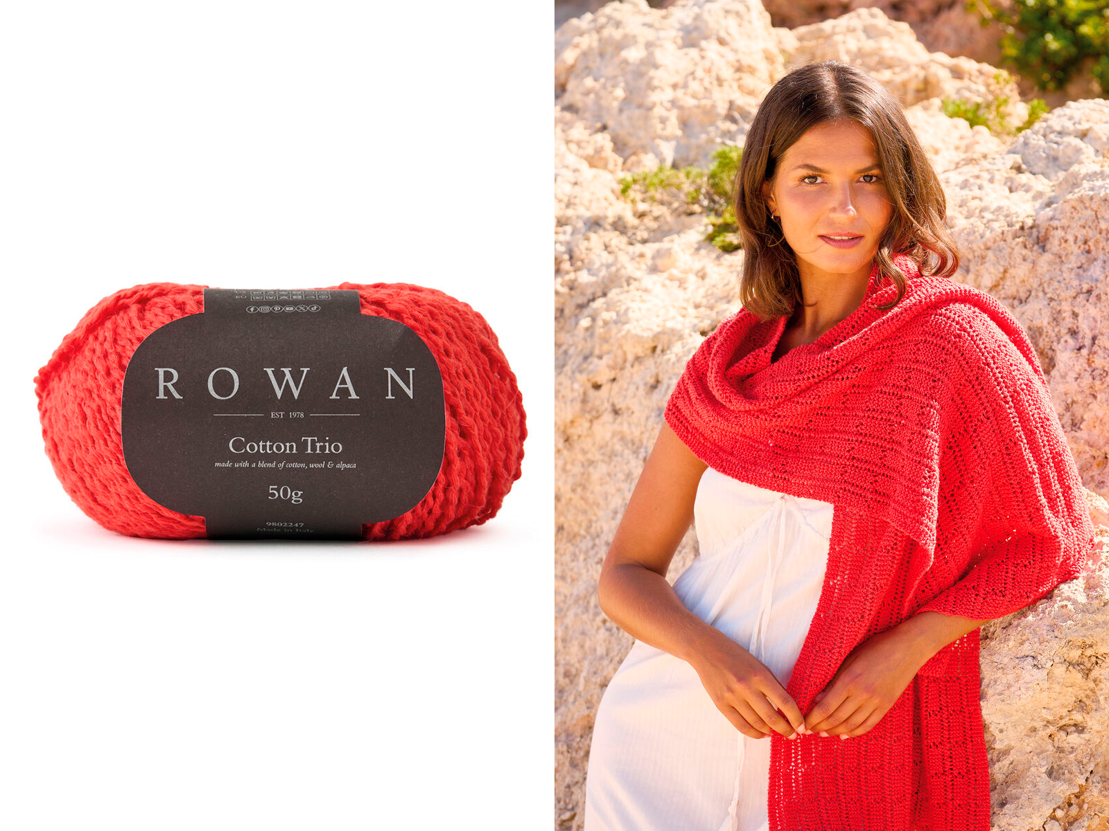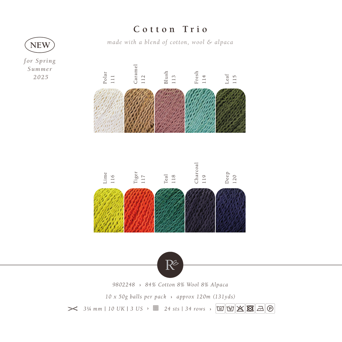 Коттон Трио от Rowan - мягкая, нежная, совсем не колючая пряжа. Имеет немного волнистую структуру, что несомненно добавит изюминку в ваше изделие.