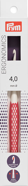 Крючок для вязания "Ergonomics" 4мм/16см, high-tech полимер, белый/розовый