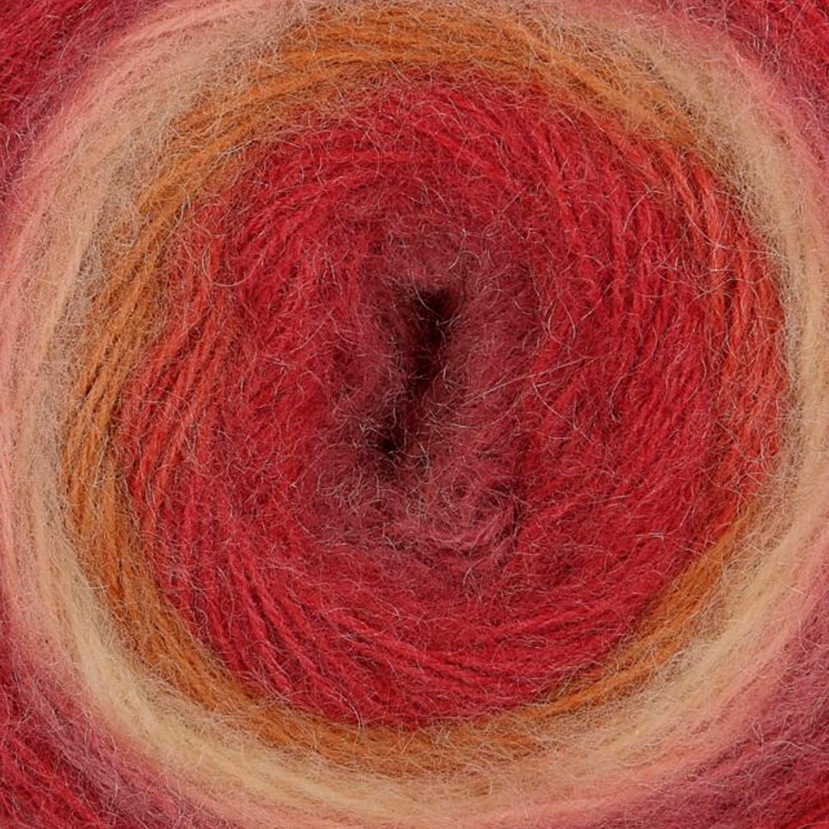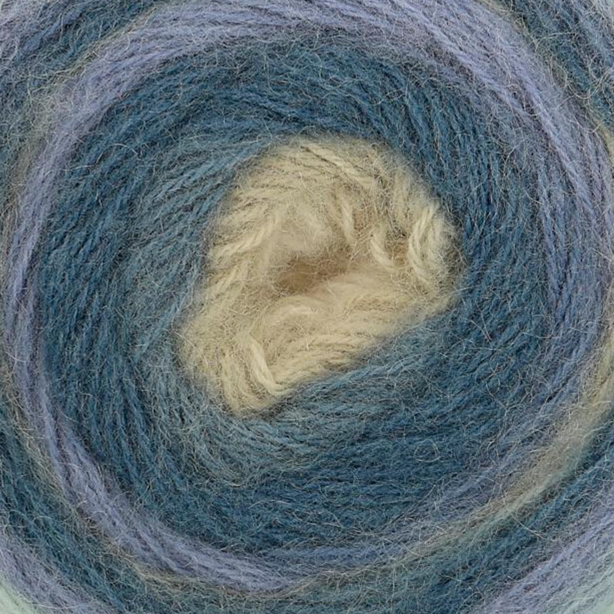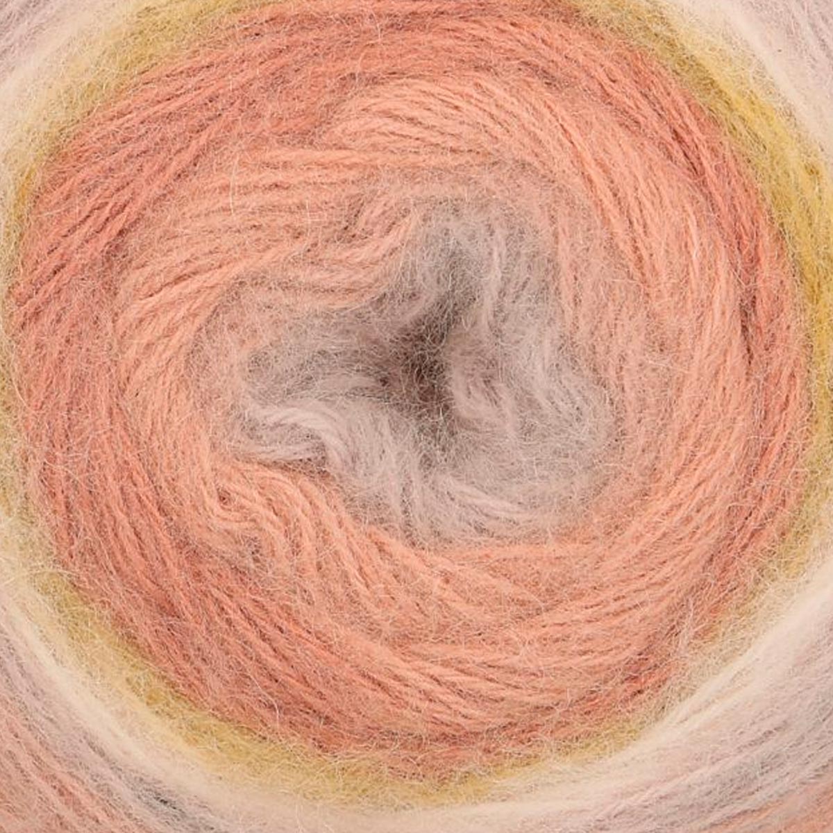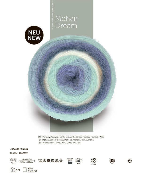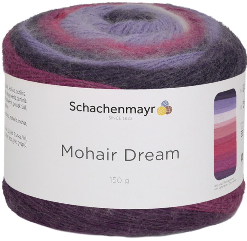 Мохер Дрим от Шахенмаер - пряжа секционного крашения, длинные секции, большие мотки по 150 гр. Длинные секции не имеют плавного перехода, просто полоски. Даже если на фото переход кажется плавным - это не так, это просто эффект хорошо подобранного узора.