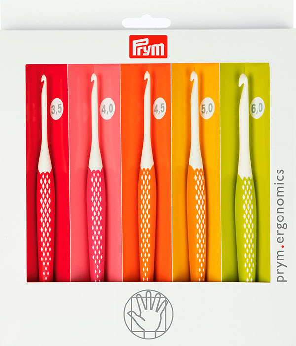 Дарящие радость подарки – со стилем! Тут напрашивается использование набора крючков для шерстяной пряжи prym.ergonomics: он состоит из 5 высококачественных крючков толщиной 3,5 мм, 4,0 мм, 4,5 мм, 5,0 мм и 6,0 мм. Легкий пластик обеспечивает простую, щадящую запястья работу руками, а крючки легко и приятно тепло ложатся в руку. Длинный, гладкий стержень в комбинации с оптимизированным крючком позволяют петлям беспрепятственно скользить, а ручка эргономичной формы из нескользящей пластмассы гарантирует, что ты не устанешь вязать. Цвет ручки отличается в зависимости от толщины крючка и позволяет быстро найти в корзине для рукоделия крючок нужного размера. Этот набор в подходящей по цвету упаковке вдохновит больших и маленьких любителей вязания крючком.