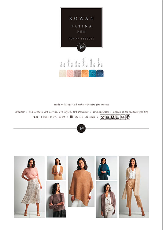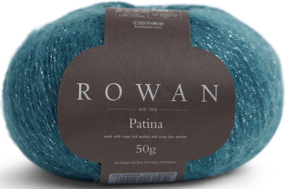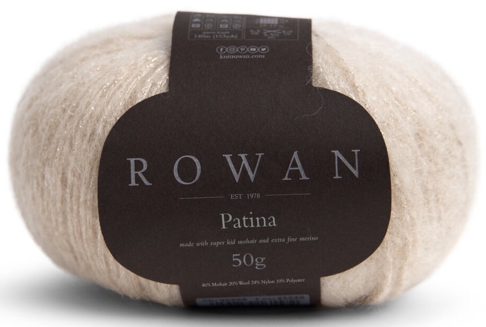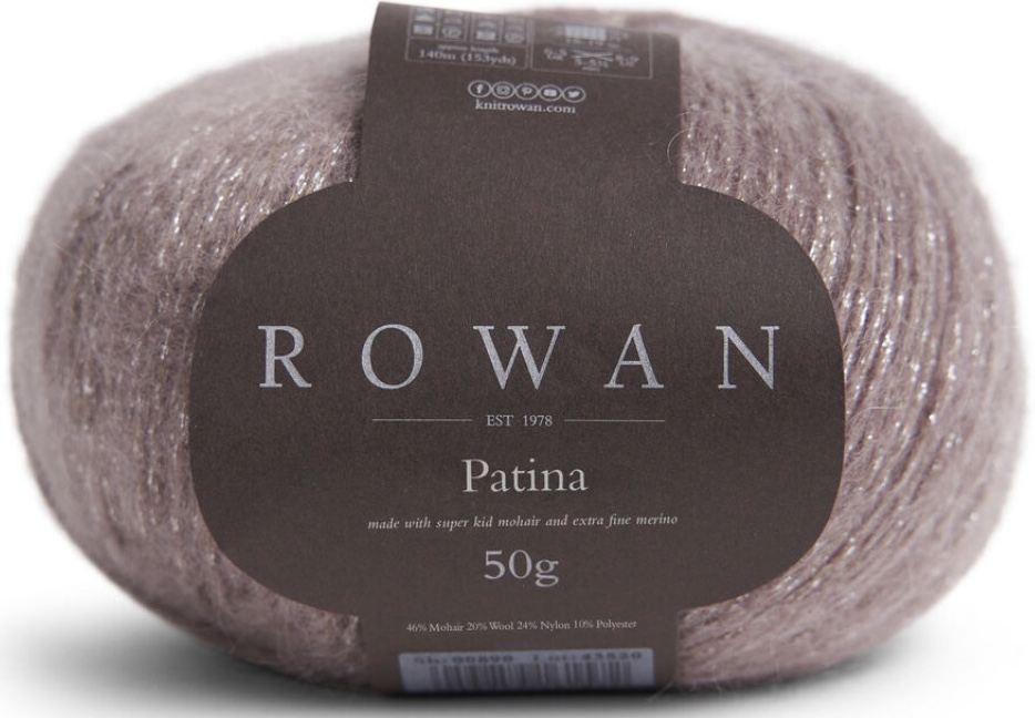 Патина от Рован (Rowan Patina)  - очень легкая пряжа с добавлением люрекса, небольшой расход. Очень красивая пряжа, петли ложатся ровно, не деформируется после стирки, люрекс очень деликатный, не колючий.