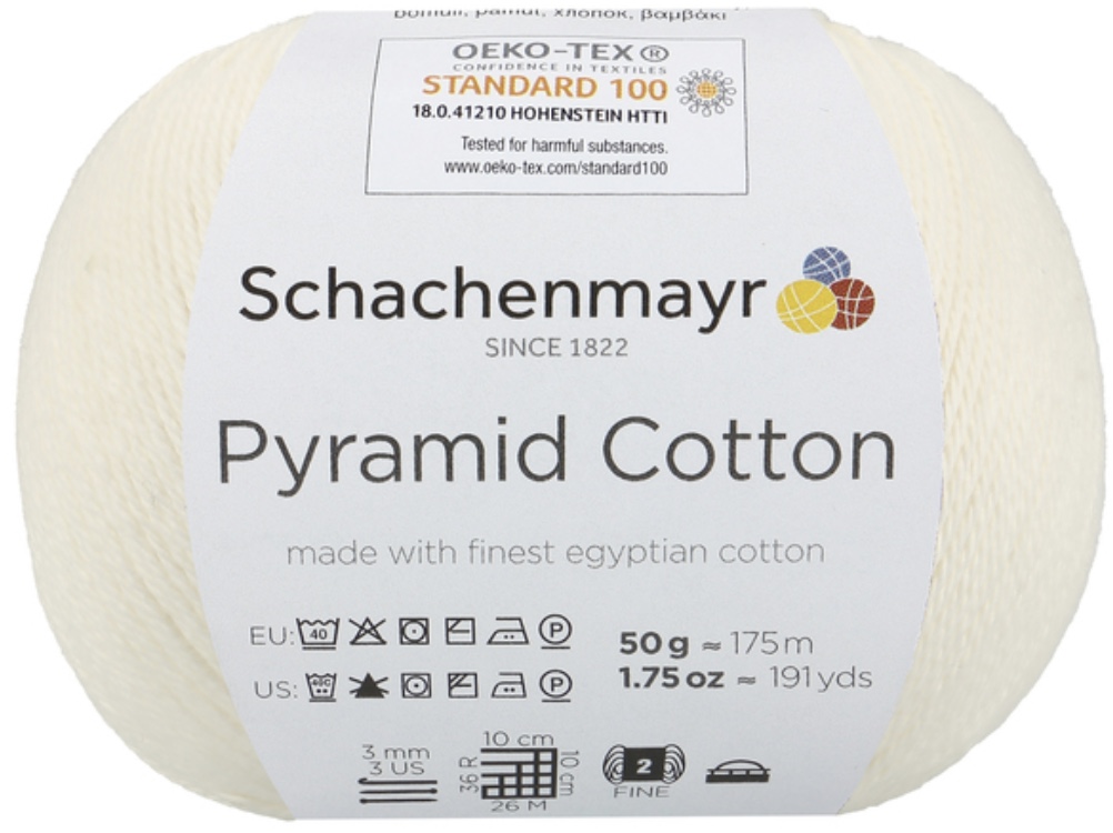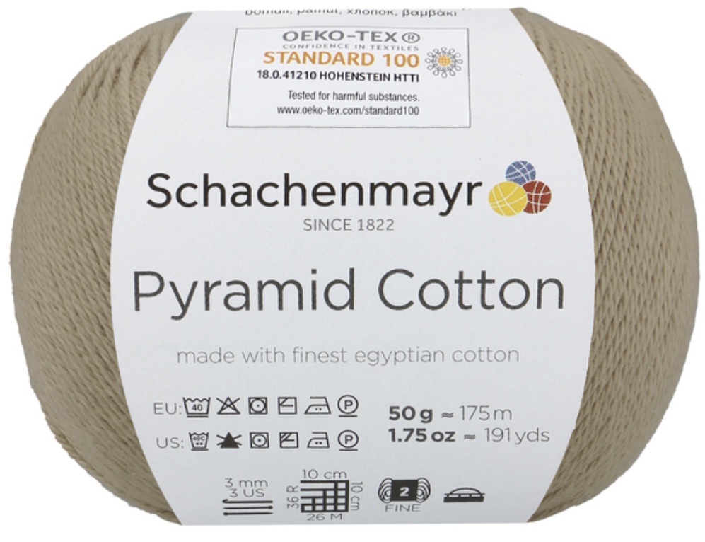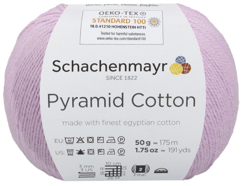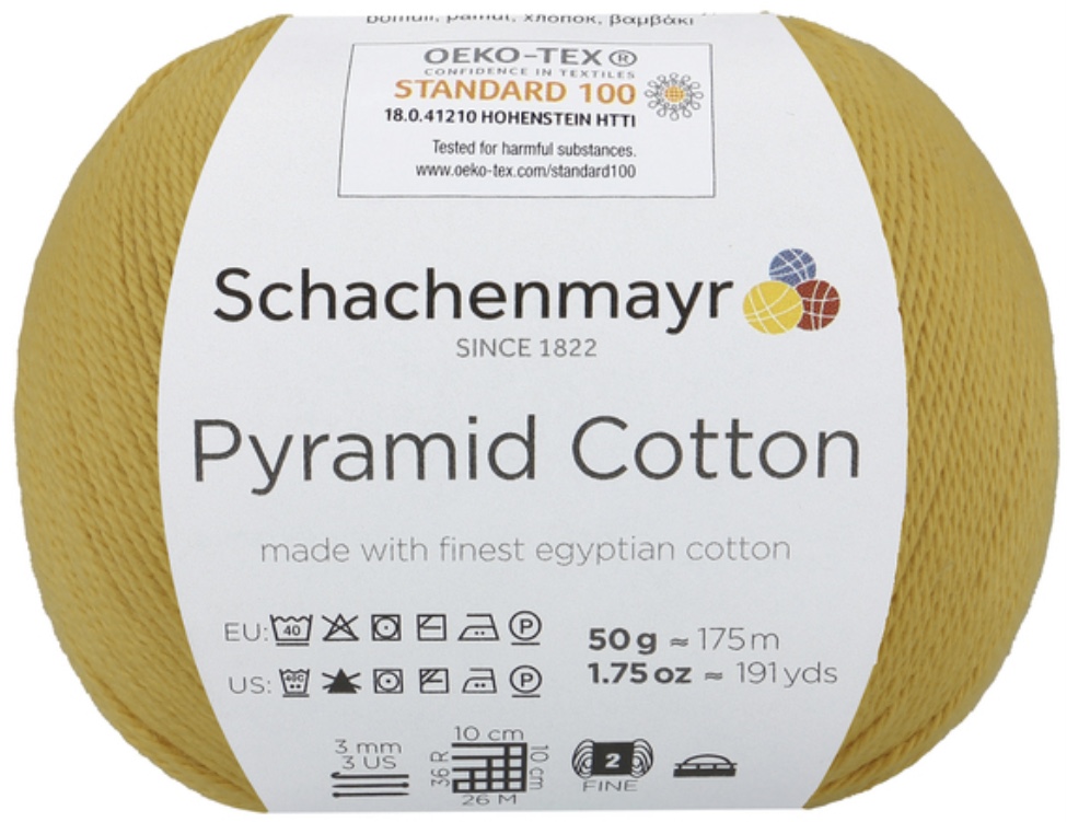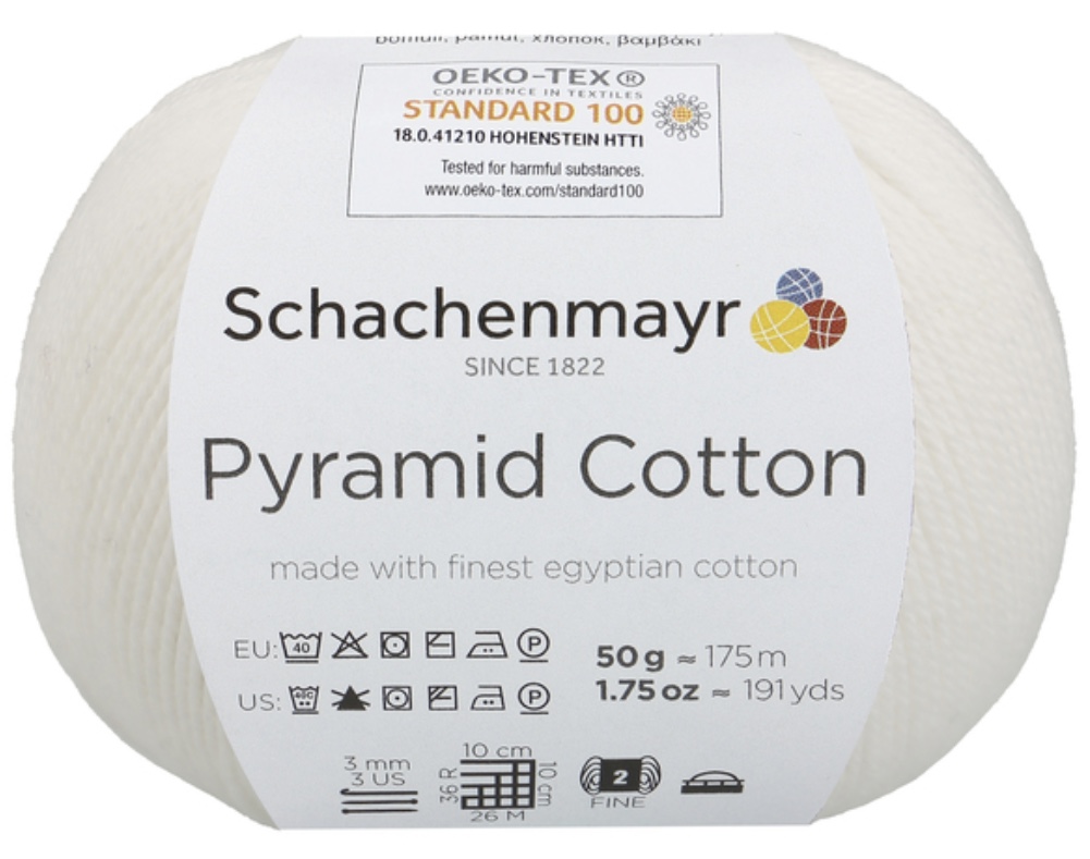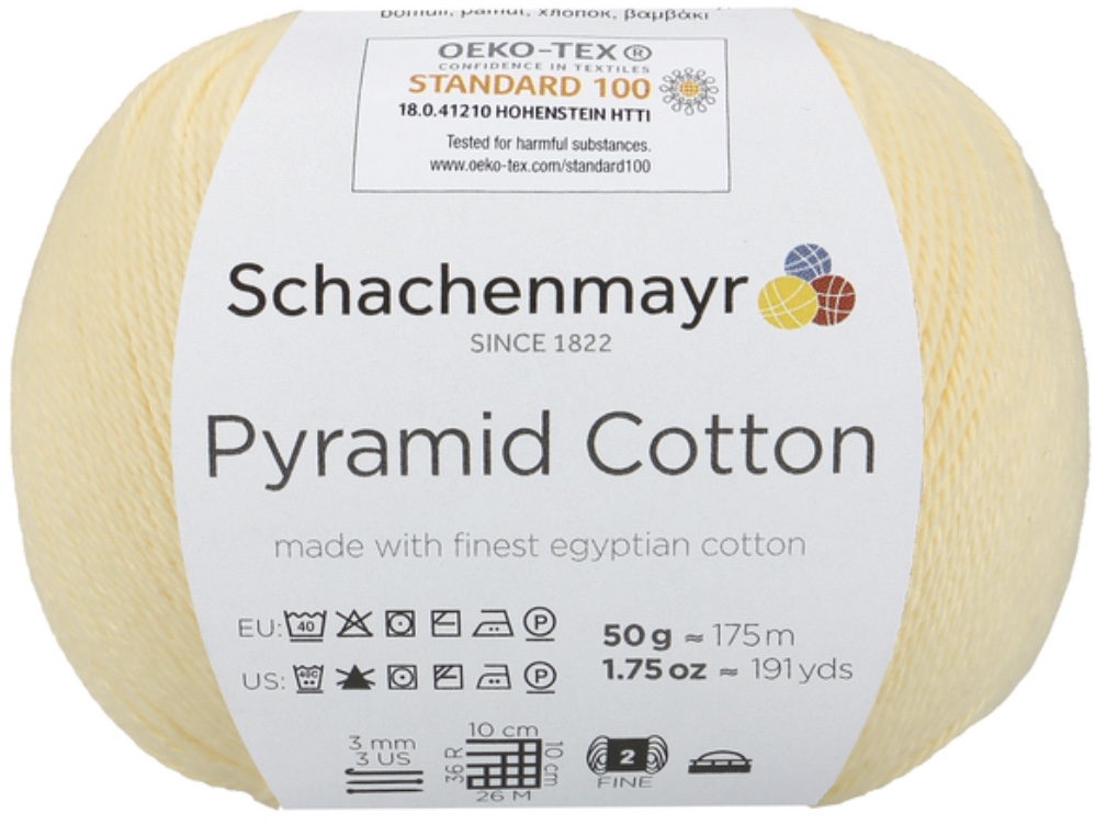 Pyramid Cotton /Пирамид Коттон/ от Schachenmayr - классическая крученая хлопковая пряжа, тонкая и мягкая. Изготовлена из египетского хлопка. Идеальна для крючка.