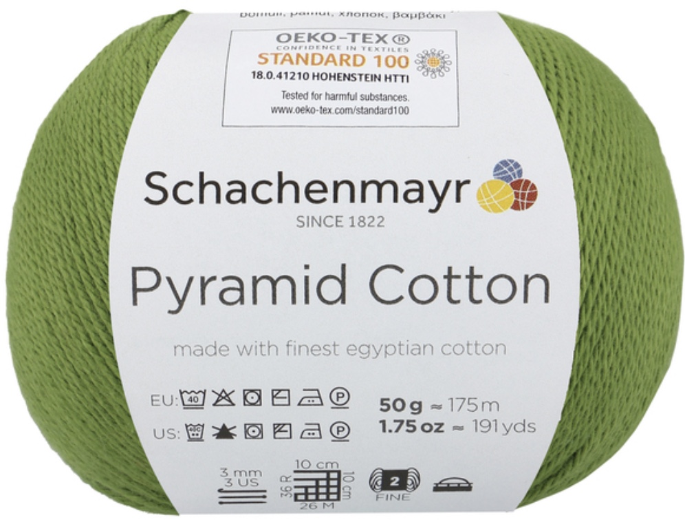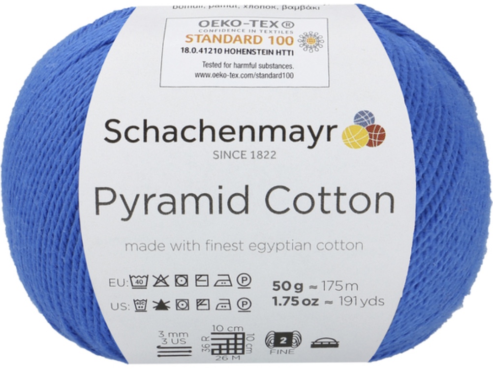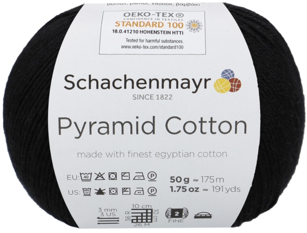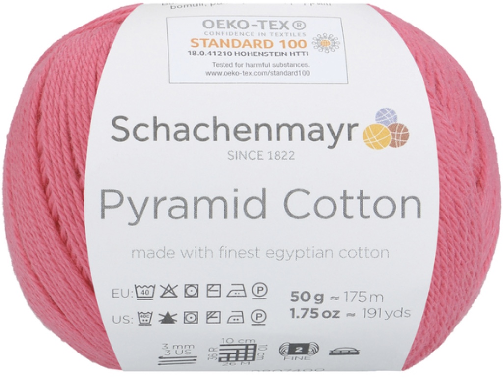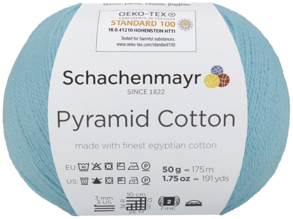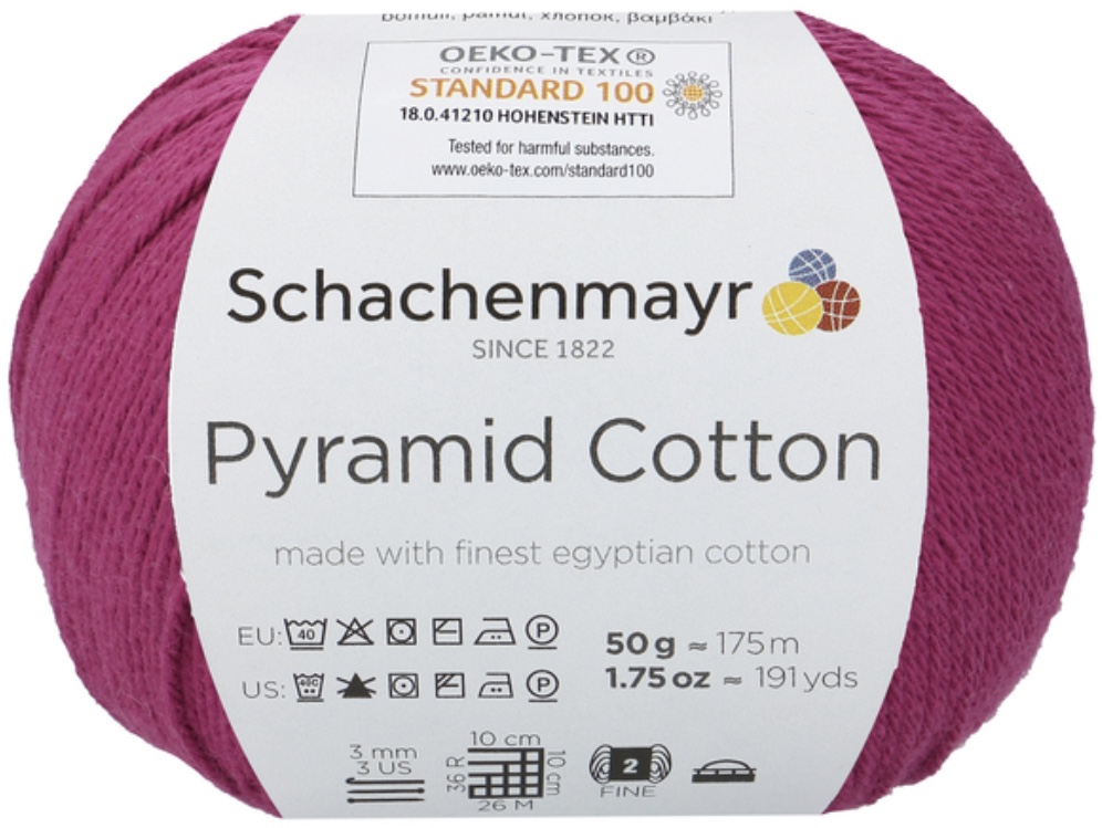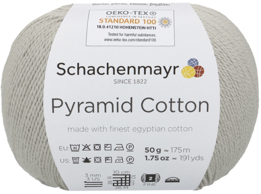 Pyramid Cotton /Пирамид Коттон/ от Schachenmayr - классическая крученая хлопковая пряжа, тонкая и мягкая. Изготовлена из египетского хлопка. Идеальна для крючка.