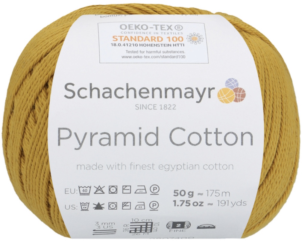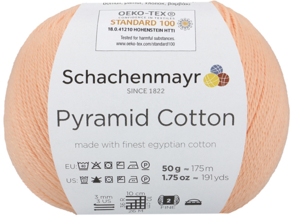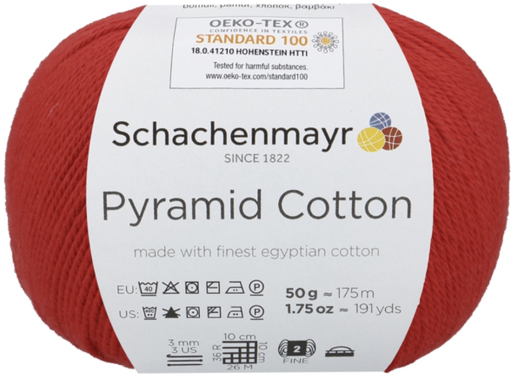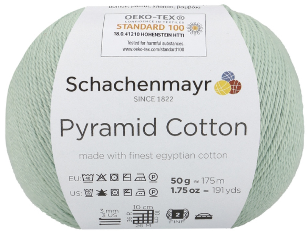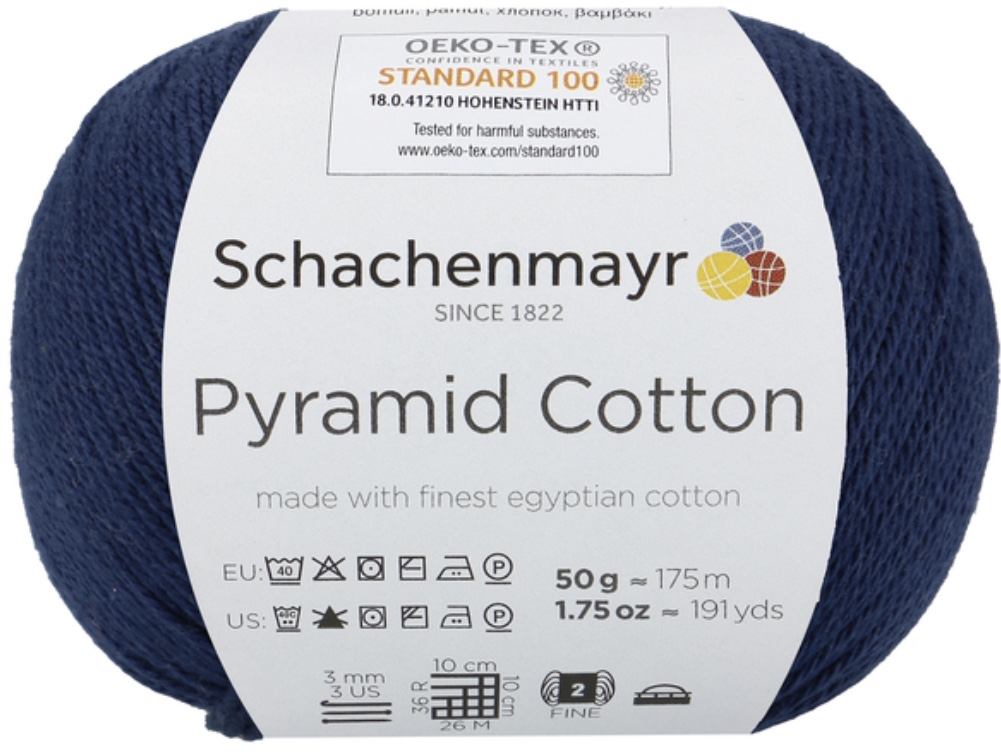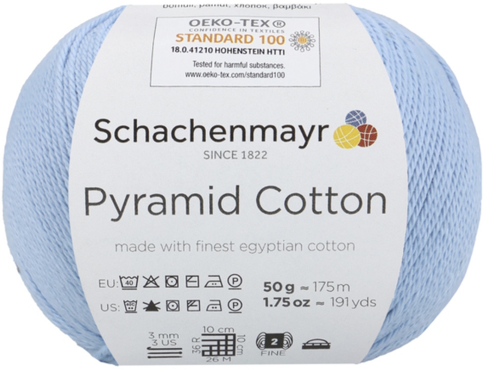 Pyramid Cotton /Пирамид Коттон/ от Schachenmayr - классическая крученая хлопковая пряжа, тонкая и мягкая. Изготовлена из египетского хлопка. Идеальна для крючка.
